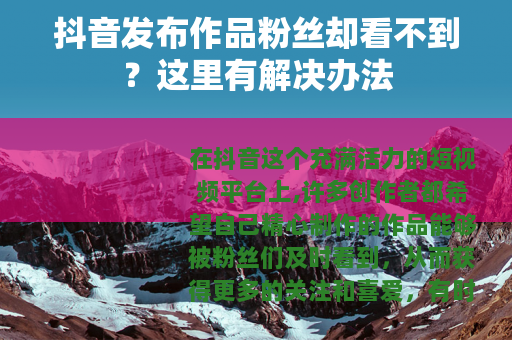 在抖音这个充满活力的短视频平台上,许多创作者都希望自己精心制作的作品能够被粉丝们及时看到,从而获得更多的关注和喜爱,有时候会出现一种令人困惑的情况,那就是发布的作品粉丝却看不到,这无疑会让创作者们感到失落和不解。