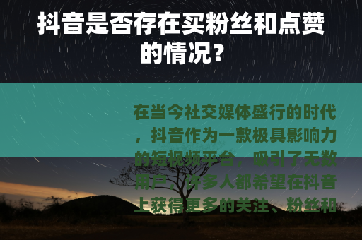 在当今社交媒体盛行的时代,抖音作为一款极具影响力的短视频平台,吸引了无数用户,许多人都希望在抖音上获得更多的关注、粉丝和点赞,以提升自己的影响力和知名度,一个问题便应运而生:抖音有买粉丝和点赞的吗?