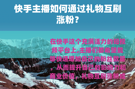 在快手这个充满活力的短视频平台上,主播们都希望能够快速增加自己的粉丝数量,从而提升自己的影响力和商业价值,礼物互刷涨粉成为了一些主播尝试的方法之一。