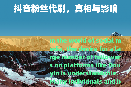 需要注意的是,抖音粉丝代刷是违反平台规定的行为,不建议用户进行此类操作,以上文章仅为基于相关话题的创作,旨在阐述其利弊,帮助用户正确看待该现象。