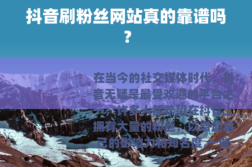 在当今的社交媒体时代,抖音无疑是最受欢迎的平台之一,许多人都希望在抖音上拥有大量的粉丝,以增加自己的影响力和知名度,一些所谓的抖音刷粉丝网站便应运而生。