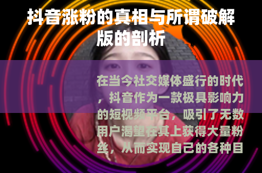 在当今社交媒体盛行的时代,抖音作为一款极具影响力的短视频平台,吸引了无数用户渴望在其上获得大量粉丝,从而实现自己的各种目标,无论是个人的兴趣展示还是商业的品牌推广,市场上出现了一些声称是抖音涨粉破解版的东西,引起了很多人的关注。