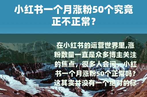 在小红书的运营世界里,涨粉数量一直是众多博主关注的焦点,很多人会问,小红书一个月涨粉50个正常吗?这其实并没有一个绝对的标准,需要从多个方面来综合考量。