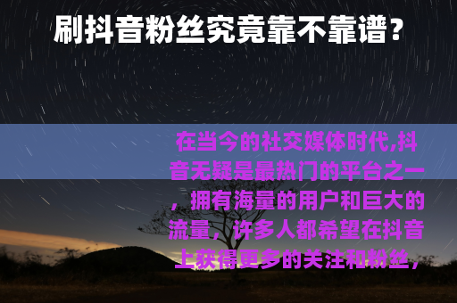 在当今的社交媒体时代,抖音无疑是最热门的平台之一,拥有海量的用户和巨大的流量,许多人都希望在抖音上获得更多的关注和粉丝,以提升自己的影响力和商业价值,一个问题便应运而生:刷抖音粉丝靠谱吗?