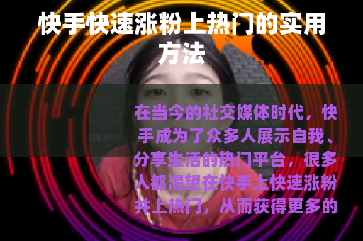 在当今的社交媒体时代,快手成为了众多人展示自我、分享生活的热门平台,很多人都渴望在快手上快速涨粉并上热门,从而获得更多的关注和机会,以下是一些切实可行的方法,帮助你在快手上实现快速涨粉上热门的目标。 质量是关键,要确保你发布的视频具有独特性、趣味性和实用性,无论是搞笑段子、美食制作教程、生活小窍门还是才艺表演,都要能吸引观众的眼球,让他们在观看后觉得有所收获或得到了快乐,如果你擅长烹饪,那么可以制作一系列详细的美食制作视频,从食材准备到烹饪过程,再到最后的成品展示,都要清晰明了,让观众能够轻松跟着学习。