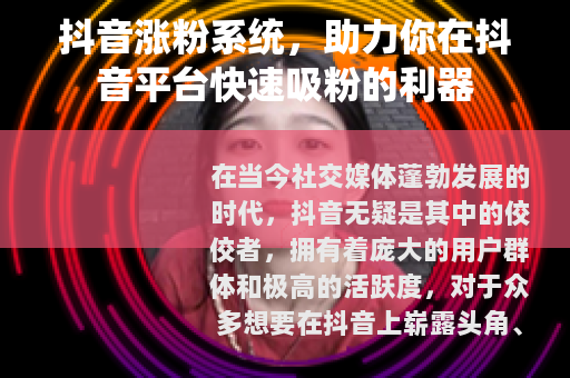 在当今社交媒体蓬勃发展的时代,抖音无疑是其中的佼佼者,拥有着庞大的用户群体和极高的活跃度,对于众多想要在抖音上崭露头角、积累粉丝的创作者来说,一个高效的抖音涨粉系统就显得尤为重要。