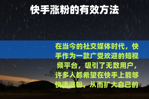 在当今的社交媒体时代,快手作为一款广受欢迎的短视频平台,吸引了无数用户,许多人都希望在快手上能够快速涨粉,从而扩大自己的影响力和社交圈,以下是一些在快手里面涨粉的实用方法。