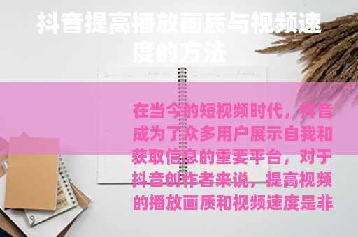 在当今的短视频时代,抖音成为了众多用户展示自我和获取信息的重要平台,对于抖音创作者来说,提高视频的播放画质和视频速度是非常关键的,这不仅能提升用户的观看体验,还有助于增加视频的传播度,以下是一些在抖音中提高播放画质和视频速度的有效方法。