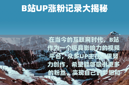 在当今的互联网时代,B站作为一个极具影响力的视频平台,众多UP主在这里努力创作,希望能够吸引更多的粉丝,实现自己的梦想和价值,而B站UP的涨粉记录,也成为了大家关注的一个热门话题。