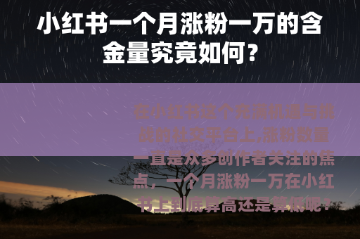 在小红书这个充满机遇与挑战的社交平台上,涨粉数量一直是众多创作者关注的焦点,一个月涨粉一万在小红书上到底算高还是算低呢?