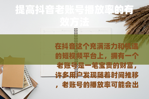 提高抖音老账号的播放率需要多方面的努力和持续的优化,只有不断提升内容质量、创新表现形式、了解受众需求、利用算法规则并保持账号活跃度,才能让老账号在抖音上重新焕发生机,获得更高的播放率和更多的关注。