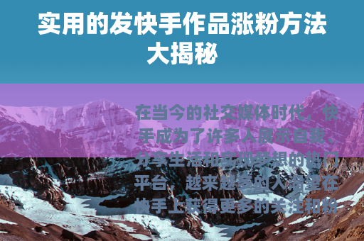 在当今的社交媒体时代,快手成为了许多人展示自我、分享生活和实现梦想的热门平台,越来越多的人渴望在快手上获得更多的关注和粉丝,那么如何才能有效地发快手作品涨粉呢?以下是一些实用的方法。