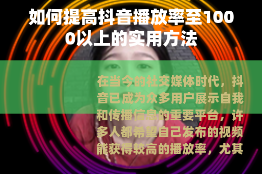 要提高抖音播放率至1000以上并非一蹴而就,需要在内容创作、视频制作、标题封面设计、利用平台功能以及保持更新等多方面下功夫,只要坚持不懈地努力,不断优化和改进自己的创作方法,相信你一定能在抖音上取得更好的成绩,让自己的视频获得更高的播放量。