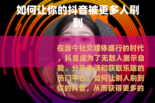 在当今社交媒体盛行的时代,抖音成为了无数人展示自我、分享生活和获取乐趣的热门平台,如何让别人刷到你的抖音,从而获得更多的关注和流量呢?以下是一些实用的方法。