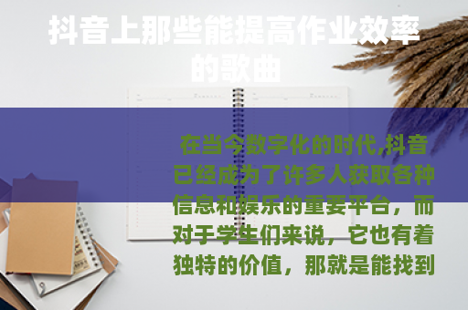 在当今数字化的时代,抖音已经成为了许多人获取各种信息和娱乐的重要平台,而对于学生们来说,它也有着独特的价值,那就是能找到一些有助于提高作业效率的歌曲。