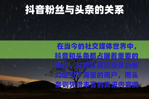 在当今的社交媒体世界中,抖音和头条都占据着重要的地位,抖音以其短视频的魅力吸引了海量的用户,而头条则凭借丰富的资讯内容拥有众多的读者,对于许多创作者来说,抖音粉丝和头条之间存在着一种特殊的联系。
