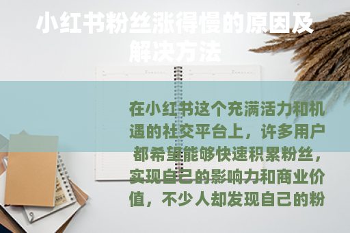 在小红书这个充满活力和机遇的社交平台上,许多用户都希望能够快速积累粉丝,实现自己的影响力和商业价值,不少人却发现自己的粉丝增长速度十分缓慢,这究竟是怎么回事呢? 质量是影响小红书粉丝增长的关键因素之一,如果你的笔记内容缺乏独特性、实用性或趣味性,那么用户在浏览时就很难产生共鸣和关注的欲望,只是简单地罗列产品特点,或者是跟风发布一些千篇一律的热门话题,而没有自己的见解和特色,这样的内容很难在海量的笔记中脱颖而出,要想吸引粉丝,就需要深入挖掘自己的兴趣点和特长,创作出有深度、有价值的内容,为用户提供真正有用的信息或带来愉悦的阅读体验。