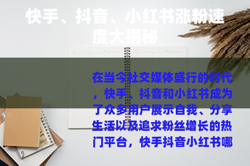 在当今社交媒体盛行的时代,快手、抖音和小红书成为了众多用户展示自我、分享生活以及追求粉丝增长的热门平台,快手抖音小红书哪个涨粉快些呢?这是一个备受关注且很多人都想知道答案的问题。
