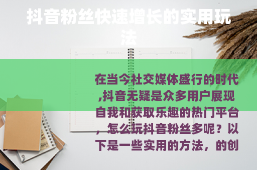 在当今社交媒体盛行的时代,抖音无疑是众多用户展现自我和获取乐趣的热门平台,怎么玩抖音粉丝多呢?以下是一些实用的方法。