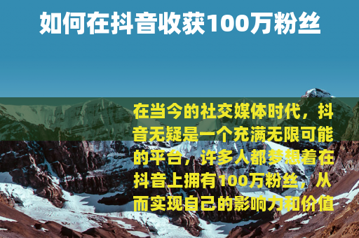 在抖音上收获100万粉丝并非一蹴而就的事情,需要付出持续的努力和耐心,不断地优化自己的内容和运营策略,只要坚持不懈,相信你也能在抖音这个大舞台上实现自己的粉丝梦想,收获属于自己的成功。