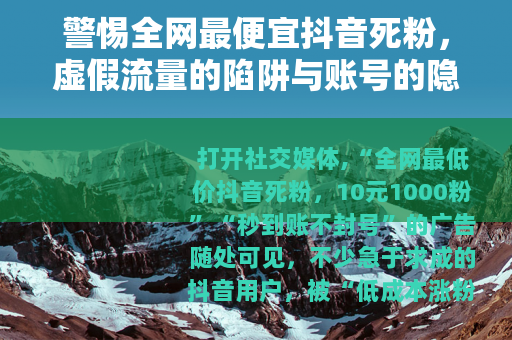 打开社交媒体,“全网最低价抖音死粉,10元1000粉”“秒到账不封号”的广告随处可见,不少急于求成的抖音用户,被“低成本涨粉”的噱头吸引,试图用死粉撑起账号“门面”,但真相是:所谓“最便宜的死粉”,本质是吞噬账号未来的毒药,看似省钱,实则付出了更昂贵的代价。