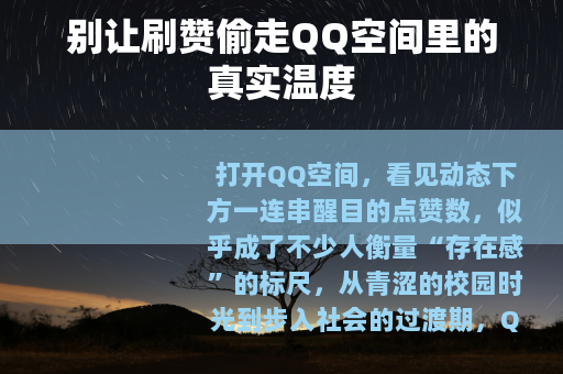 QQ空间里的每一个点赞,都应该是一份真诚的共鸣,别让“刷赞”偷走那些真实的温度,别让虚假的数字掩盖了青春的底色,让我们回到最初的样子——用真实的动态,交真诚的朋友,让每一颗小红心,都带着温暖的光。
