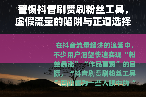 在抖音流量经济的浪潮中,不少用户渴望快速实现“粉丝暴涨”“作品高赞”的目标,“抖音刷赞刷粉丝工具”因此成为一些人眼中的“捷径”,这种看似高效的手段,实则是一条布满荆棘的险路——不仅违反平台规则,还可能危及账号安全、触碰法律红线,最终让“增长梦”沦为“泡影”。