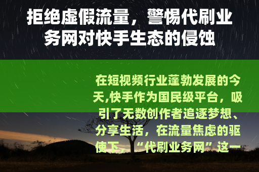 快手的魅力,在于每一个真实的故事、每一次真诚的互动,让我们远离虚假流量的陷阱,用优质内容点亮自己的账号,共同维护一个公平、健康、有温度的短视频生态。