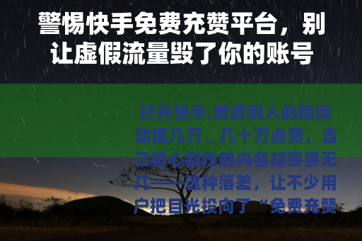 打开快手,看着别人的视频动辄几万、几十万点赞,自己精心制作的内容却寥寥无几——这种落差,让不少用户把目光投向了“免费充赞平台”,但你真的了解这些平台背后的猫腻吗?所谓“免费”,往往是陷阱的开始。