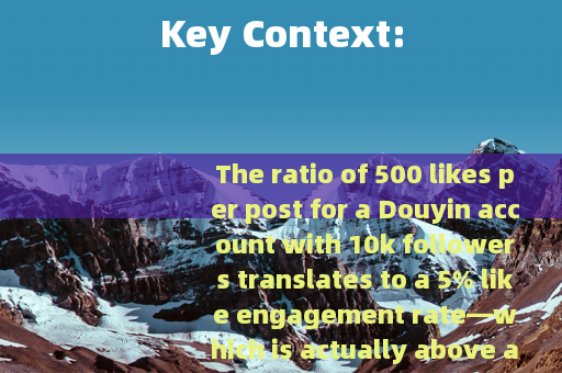 The ratio of 500 likes per post for a Douyin account with 10k followers translates to a 5% like engagement rate—which is actually above average for micro-influencers (10k-100k followers) on the platform.