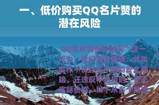 QQ名片赞低价购买”这一行为,我们需要明确:此类操作不仅存在严重的安全风险,还违反平台规则,更无实际价值,以下从多个角度分析,帮助大家认清其危害并树立健康的社交观念: