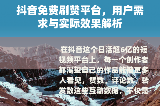 在抖音这个日活超6亿的短视频平台上,每一个创作者都渴望自己的作品能被更多人看见,赞数、评论数、转发数这些互动数据,不仅是作品受欢迎程度的直观体现,也直接影响着抖音算法对内容的推荐力度。“抖音刷赞平台免费”这个话题逐渐走进了大家的视野——很多人想通过免费的方式快速提升赞数,让自己的作品获得更高的曝光,我们就来深入聊聊这个现象,看看这些免费刷赞服务背后的逻辑,以及它们真的能帮创作者实现目标吗?