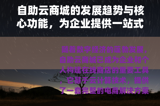 随着数字经济的蓬勃发展,自助云商城已成为企业和个人构建在线商店的重要工具,它基于云计算技术,提供了一套完整的电商解决方案,允许用户自主搭建、管理和运营网上店铺,无需依赖复杂的技术开发,这种模式不仅简化了电商入门流程,还显著降低了运营成本,成为现代商业活动中不可或缺的一部分。