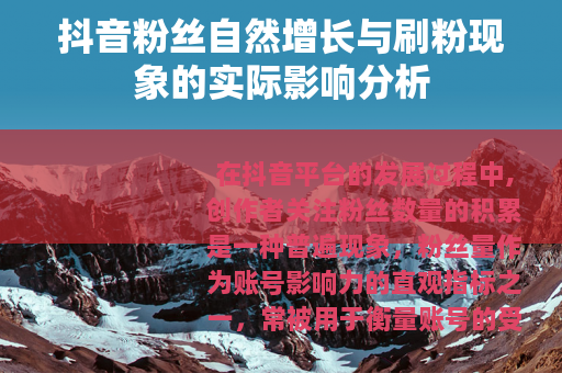在抖音平台的发展过程中,创作者关注粉丝数量的积累是一种普遍现象,粉丝量作为账号影响力的直观指标之一,常被用于衡量账号的受欢迎程度或商业潜力,市场上出现了一些提供所谓快速增加粉丝数量的服务,即通常所说的“刷粉丝”,这一现象引发了关于账号健康生长与长期价值塑造的讨论。