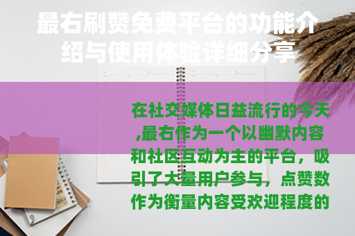在社交媒体日益流行的今天,最右作为一个以幽默内容和社区互动为主的平台,吸引了大量用户参与,点赞数作为衡量内容受欢迎程度的重要指标,许多用户希望提升自己帖子的点赞量,以增加曝光和互动,一些提供刷赞服务的免费平台应运而生,帮助用户快速获得点赞,本文将介绍这类平台的基本功能、使用方式以及用户体验,为感兴趣的用户提供参考。