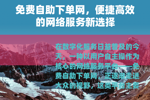 在数字化服务日益普及的今天,一种以用户自主操作为核心的网络服务平台——免费自助下单网,正逐渐走进大众的视野,这类平台主要面向有各类线上订单需求的用户,提供了一种简洁、直接的服务获取方式,用户无需经过复杂的沟通或委托流程,即可独立完成所需服务的下单与配置,整个过程公开透明,极大地提升了效率与便捷性。