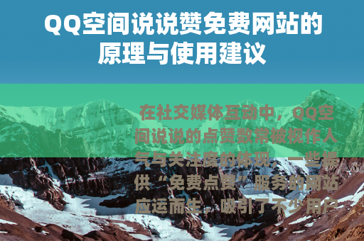 在社交媒体互动中,QQ空间说说的点赞数常被视作人气与关注度的体现,一些提供“免费点赞”服务的网站应运而生,吸引了不少用户的注意,这类网站通常宣称无需付费即可为用户的说说增加点赞数量,了解其运作方式并合理看待其作用,对于普通用户而言具有一定参考价值。