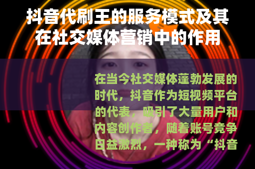 在当今社交媒体蓬勃发展的时代,抖音作为短视频平台的代表,吸引了大量用户和内容创作者,随着账号竞争日益激烈,一种称为“抖音代刷王”的服务逐渐进入公众视野,这类服务主要专注于帮助用户提升账号的互动数据,如粉丝量、点赞数、评论和分享等,旨在增强账号的可见度和影响力,本文将从服务模式、用户需求、市场现状以及其在社交媒体营销中的角色等方面进行阐述。
