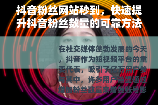 在社交媒体蓬勃发展的今天,抖音作为短视频平台的重要代表,吸引了亿万用户参与其中,许多用户希望通过增加粉丝数量来增强账号影响力,而抖音粉丝网站秒到服务便成为了一种备受关注的工具,这项服务允许用户通过专业网站购买粉丝,并实现粉丝的快速到账,为账号成长提供了便捷支持。