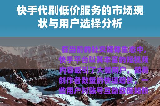 围绕快手平台的代刷低价服务是一个特定的市场现象,它反映了部分用户在内容创作与运营初期的现实需求,用户在考虑此类服务时,应基于充分的信息收集和理性评估,选择符合自身情况且操作方式相对可靠的服务提供方,并对其效果抱有理性的预期,在数字内容创作的道路上,持续产出优质内容、与观众建立真实连接,依然是获得长远发展的根本基石。