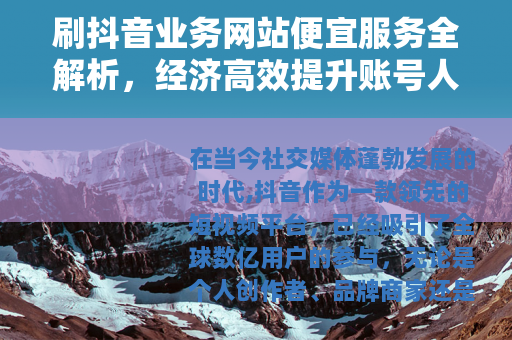 刷抖音业务网站便宜服务全解析,经济高效提升账号人气的方法