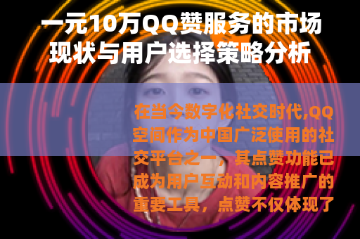 在当今数字化社交时代,QQ空间作为中国广泛使用的社交平台之一,其点赞功能已成为用户互动和内容推广的重要工具,点赞不仅体现了对内容的认可,还能增强内容的可见性和影响力,随着社交媒体竞争的加剧,一种称为“一元10万QQ赞”的服务逐渐进入公众视野,以极低的价格提供大量点赞,吸引了众多用户的关注,本文将对这一现象进行综合评述,从服务模式、市场驱动因素、技术实现、用户体验及行业效应等方面展开分析,为用户提供参考信息。