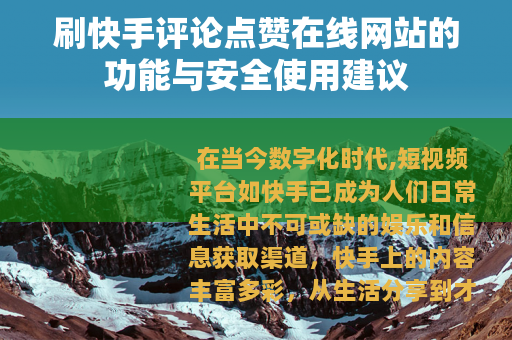 在当今数字化时代,短视频平台如快手已成为人们日常生活中不可或缺的娱乐和信息获取渠道,快手上的内容丰富多彩,从生活分享到才艺展示,吸引了亿万用户的关注,在这个平台上,评论和点赞作为用户互动的重要指标,不仅反映了内容的受欢迎程度,还直接影响着内容的传播范围和推荐算法的偏好,许多用户寻求提升互动数据的方法,刷快手评论点赞的在线网站应运而生,这些网站通过提供便捷的服务,帮助用户快速增加评论和点赞数量,从而增强内容的可见性和影响力,本文将介绍这类在线网站的功能、使用场景以及如何安全合理地利用它们,以辅助内容创作者在快手平台上取得更好的效果。