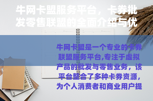 牛网卡盟服务平台,卡券批发零售联盟的全面介绍与优势分析