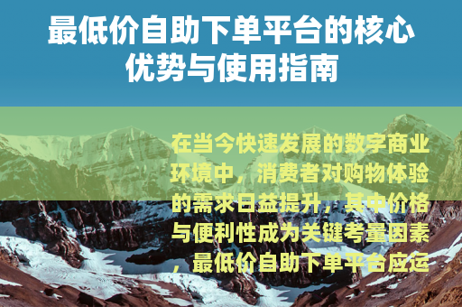 在当今快速发展的数字商业环境中,消费者对购物体验的需求日益提升,其中价格与便利性成为关键考量因素,最低价自助下单平台应运而生,通过整合资源和技术优化,为用户提供以最优惠价格自主完成交易的服务,这类平台不仅简化了购物流程,还显著降低了成本,成为现代消费模式中的重要组成部分,本文将详细探讨最低价自助下单平台的功能特点、实际应用以及其对用户生活的积极影响。