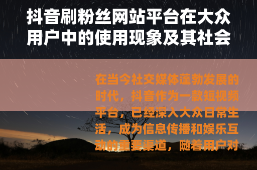 通过以上讨论,本文从现象描述到影响分析,全面展现了抖音刷粉丝网站平台与大众用户之间的关联,在这一过程中,我们避免了简单化的评判,而是着重于呈现事实与观察,希望能为读者提供有益的参考,社交媒体的世界仍在快速发展,理解这些现象有助于我们更好地导航数字生活,追求更有意义的连接与表达。