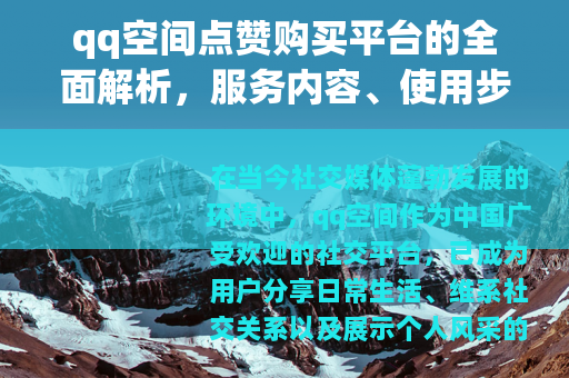 在当今社交媒体蓬勃发展的环境中,qq空间作为中国广受欢迎的社交平台,已成为用户分享日常生活、维系社交关系以及展示个人风采的重要窗口,在这个虚拟社区中,点赞功能不仅是一种简单的互动形式,更是衡量内容受欢迎程度和用户社交影响力的关键指标,随着社交互动的日益频繁,许多用户期望快速提升点赞数量,以增强个人或品牌的可见度与吸引力,为此,qq空间点赞购买平台应运而生,为用户提供了一种便捷高效的解决方案,本文将系统介绍这类平台的服务内容、操作流程及其在社交中的积极角色,帮助读者获得全面的认识。