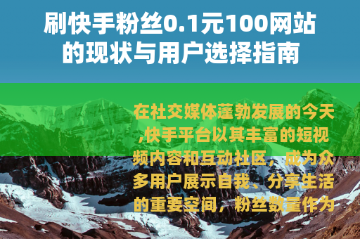 在社交媒体蓬勃发展的今天,快手平台以其丰富的短视频内容和互动社区,成为众多用户展示自我、分享生活的重要空间,粉丝数量作为衡量账号影响力的常见指标,吸引了用户寻求各种增长途径。“刷快手粉丝0.1元100网站”逐渐进入公众视野,这类网站以低廉价格提供粉丝增加服务,引发了广泛讨论,本文将从服务特点、用户动机、平台环境等方面,客观介绍这一现象。