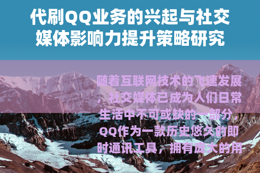 随着互联网技术的飞速发展,社交媒体已成为人们日常生活中不可或缺的一部分,QQ作为一款历史悠久的即时通讯工具,拥有庞大的用户群体和丰富的社交功能,近年来,代刷QQ业务逐渐进入公众视野,成为许多用户提升社交媒体影响力的选择之一,本文将从多个角度探讨代刷QQ业务的发展背景、服务内容及其在实际应用中的表现,以期为用户提供全面的参考。