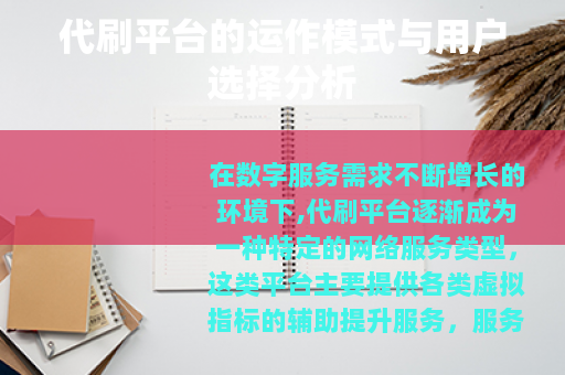 代刷平台作为一种衍生服务模式,其存在基于明确的市场需求,用户在选择相关服务时,应优先关注服务的透明度、稳定性和对自身需求的匹配度,通过理性判断做出适合自己的决定,网络服务的健康发展,最终依赖于服务提供者的规范操作与使用者的理性选择之间的良性互动。
